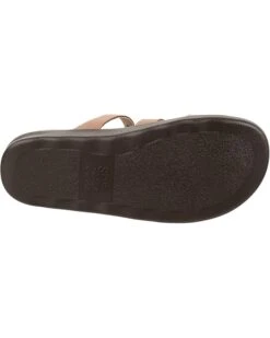 Naples sandals without back strap in Praline or sand color. They are soft, comfortable from first try and the top strap has pretty designs. Straps length was right for height/weight (5’6″ / 160 lbs with moderate arch). The foot seems to move towards the back of the sandal regardless of adjustment to the strap. Possibly a 1/2 size larger would fix this issue.